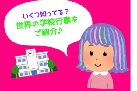 【英語で知ろう】海外の学校行事をご紹介♪ 世界の文化 公開日:2019年5月24日 今回は海外のイベントをご紹介します!英語を使って海外の方とコミュニケーションする上で、海外の文化を知っておくこともとても大切です。 なかには日本では考えられないようなおもしろいものも^^たくさんあるイベントの中からいくつ