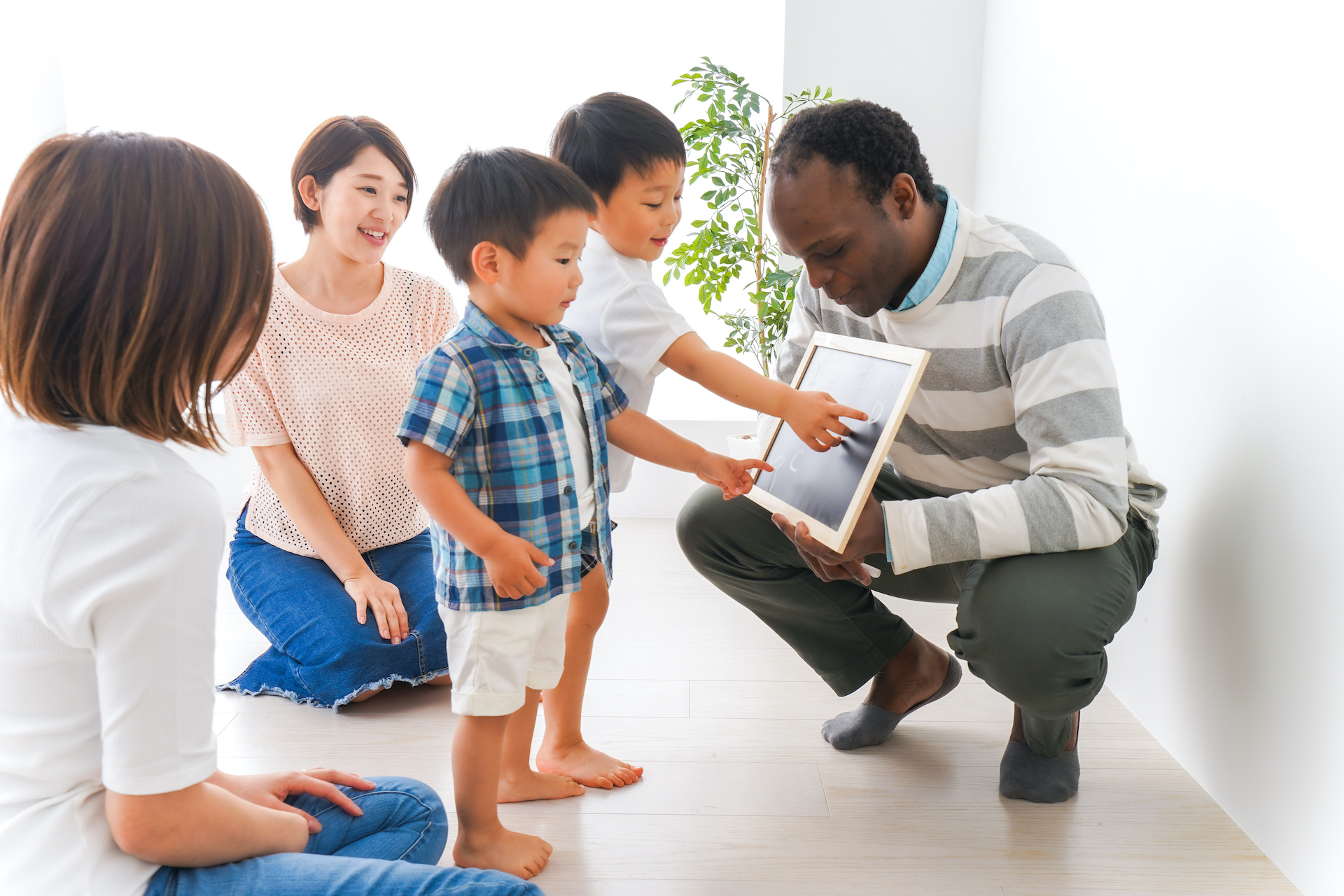 英会話教室に通う子供とお母さん