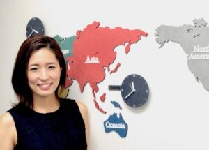 世界地図と英語の先生