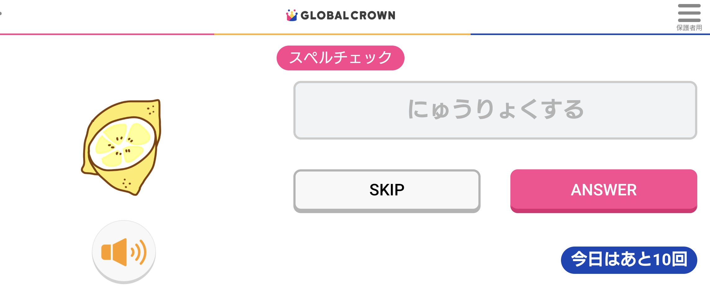 「スペルチェック」では、レッスンで先生と一緒に学習した単語を学習することができます。