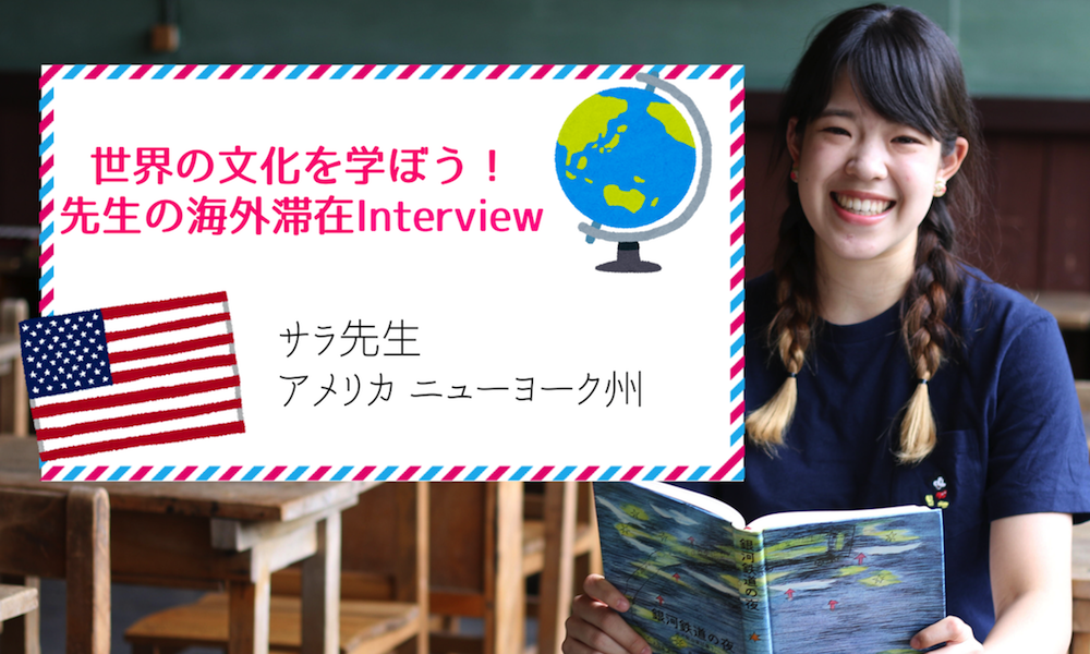 今回は先日までアメリカのニューヨーク州へ留学されていた、サラ先生へ現地でのお話を伺いました。