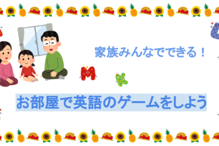 夏にピッタリ!お部屋でできるゲーム6選! 英語教育 親子で英会話 公開日:2020年8月28日 暑い日が続いていますね!また、遠出して思いっきり遊ぶことも難しいこのご時世。涼しいお部屋で、家族みんなで楽しめて英語の勉強にもなるゲームをご紹介します!お家の中にあるものでできるゲームばかりです^^